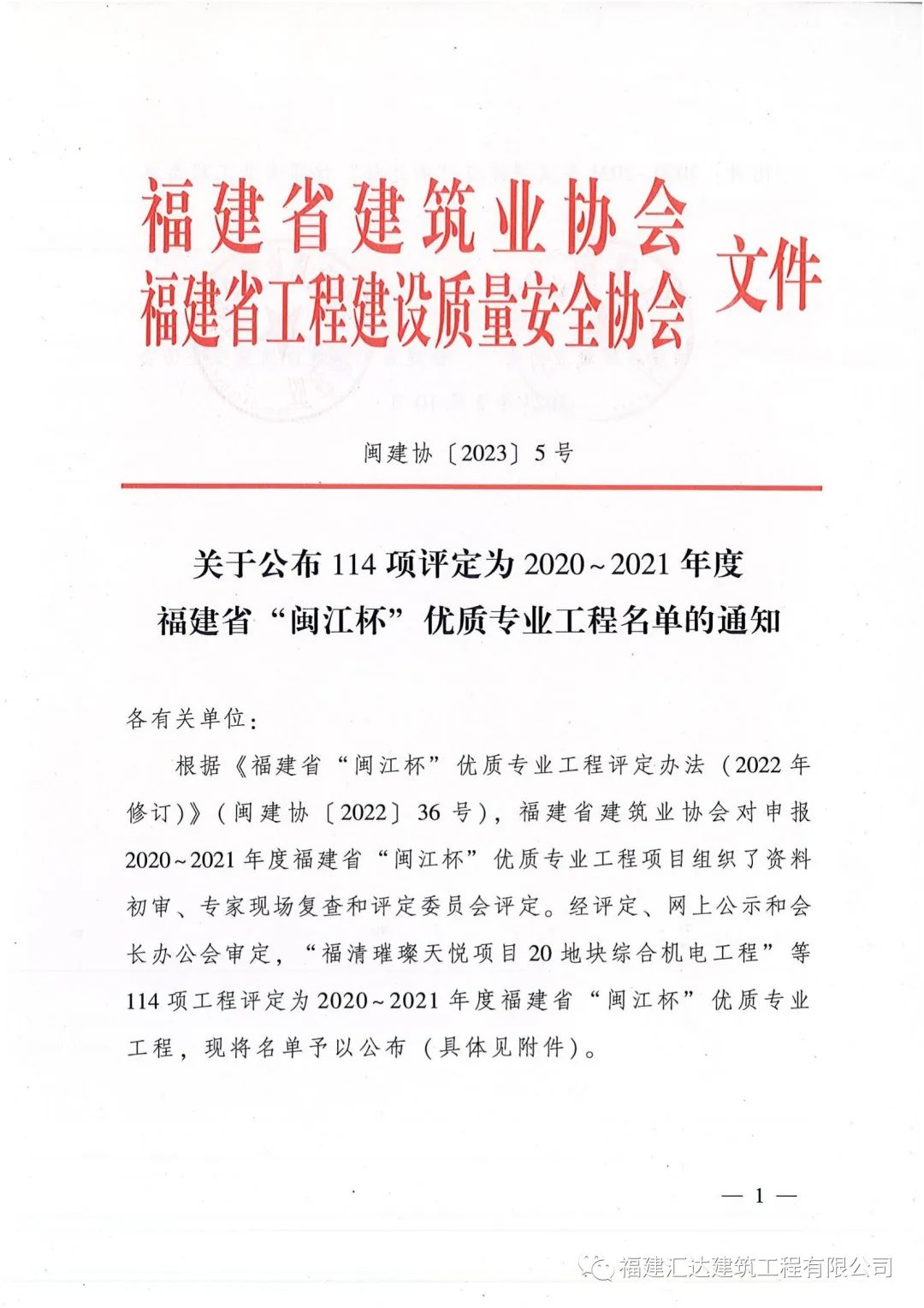 新利(中国)官方承建的城发·福郡智能化项目喜获“闽江杯”优质专业工程